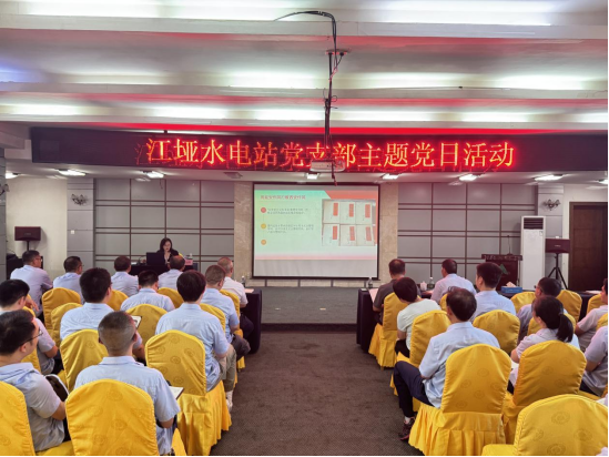 公司黨群部、江埡電站黨支部書記以及電站支部黨員共40余人參加黨課學習。