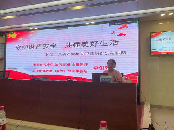 講座邀請到湖南省司法廳“法潤三湘”志愿律師、上海市錦天城(長沙)律師事務所律師李俊玲授課。她以《守護財產(chǎn)安全 共建美好生活》為題,從網(wǎng)絡電信犯罪、非法集資犯罪兩個方面,結合相關法律法規(guī),以真實的案例生動形象地解析了兩種犯罪的特點與危害,重點講述了“五要”、“七不要”等防范措施,并對被騙后如何應對提供了現(xiàn)實可行的方法和策略。
